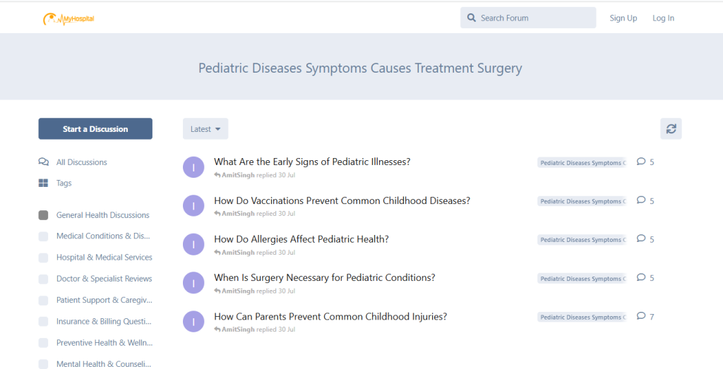 Parents and caregivers seeking real experiences, expert answers, and guidance related to children’s health can explore discussions on the Pediatric Diseases Symptoms, Causes, Treatment & Surgery forum on MyHospitalNow: