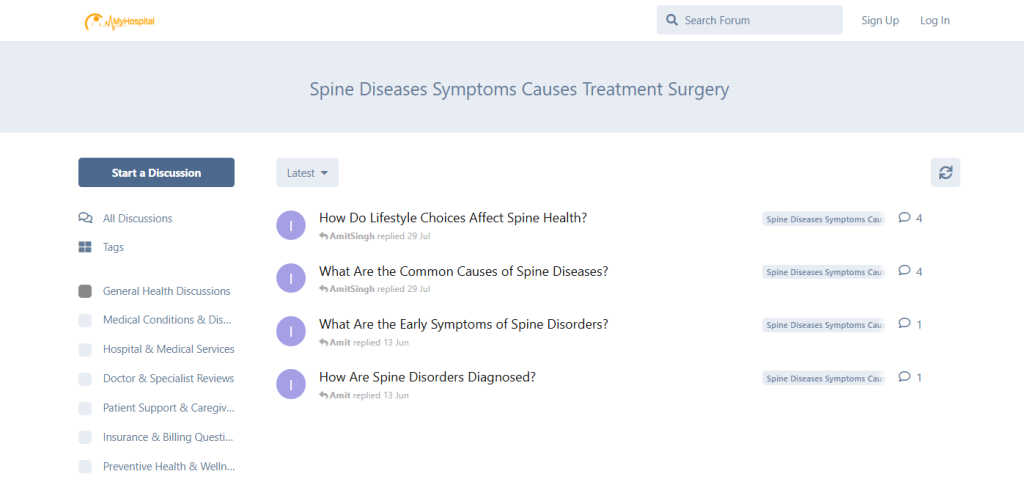 Patients seeking real experiences, treatment clarity, and hospital insights can explore detailed discussions in the Spine Diseases Symptoms, Causes, Treatment & Surgery forum on MyHospitalNow: